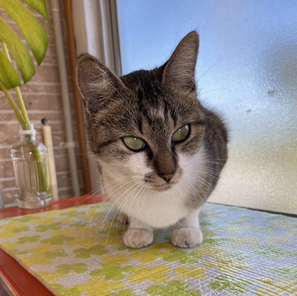直売所には、庭に住み着いた「デンシャ」という名前の、看板猫デンちゃんがお出迎えをしてくれます。